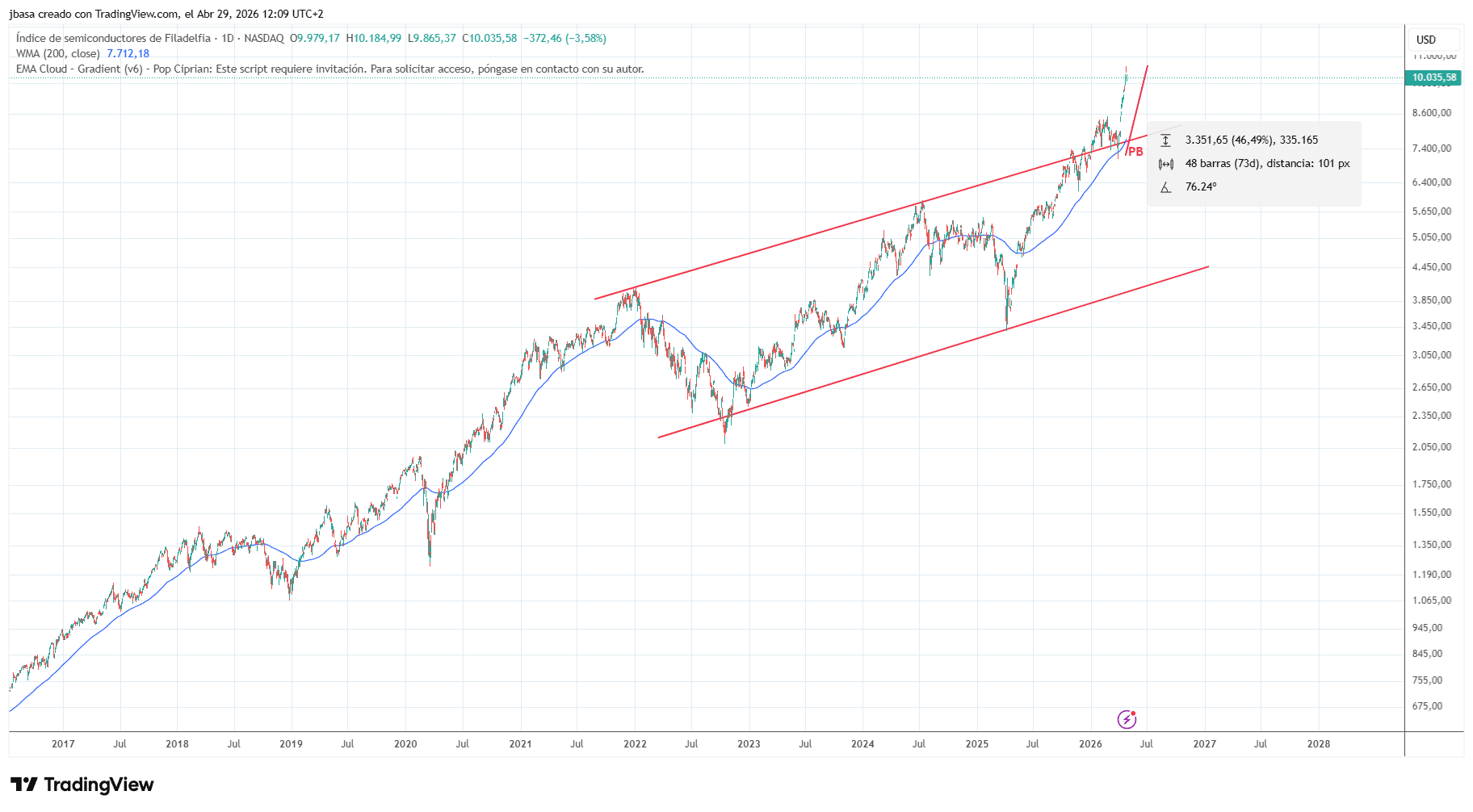 Esa es la cifra que ha puesto al índice de semiconductores de Filadelfia, el SOX, en el centro del mercado. No al S&P 500 o al Stoxx 600. El dinero está mirando a los chips en un movimiento que nos recuerda a situaciones peligrosas en el pasado.